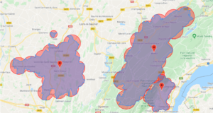 GeoCircling génère une combinaison de petits cercles, épousant parfaitement la zone de chalandise de chaque magasin. Cette avancée technologique supprime donc le risque de concurrence entre deux points de vente et cible les personnes réellement susceptibles de venir en magasin, quel que soit le canal de diffusion (Google, Facebook, Instagram, DSP pour le Display, Waze, etc.) Cette technologie permet également de créer des zones de diffusion différentes en fonction de l’opération mise en place, comme par exemple une campagne de recrutement, qui nécessitera d’élargir la zone initiale.